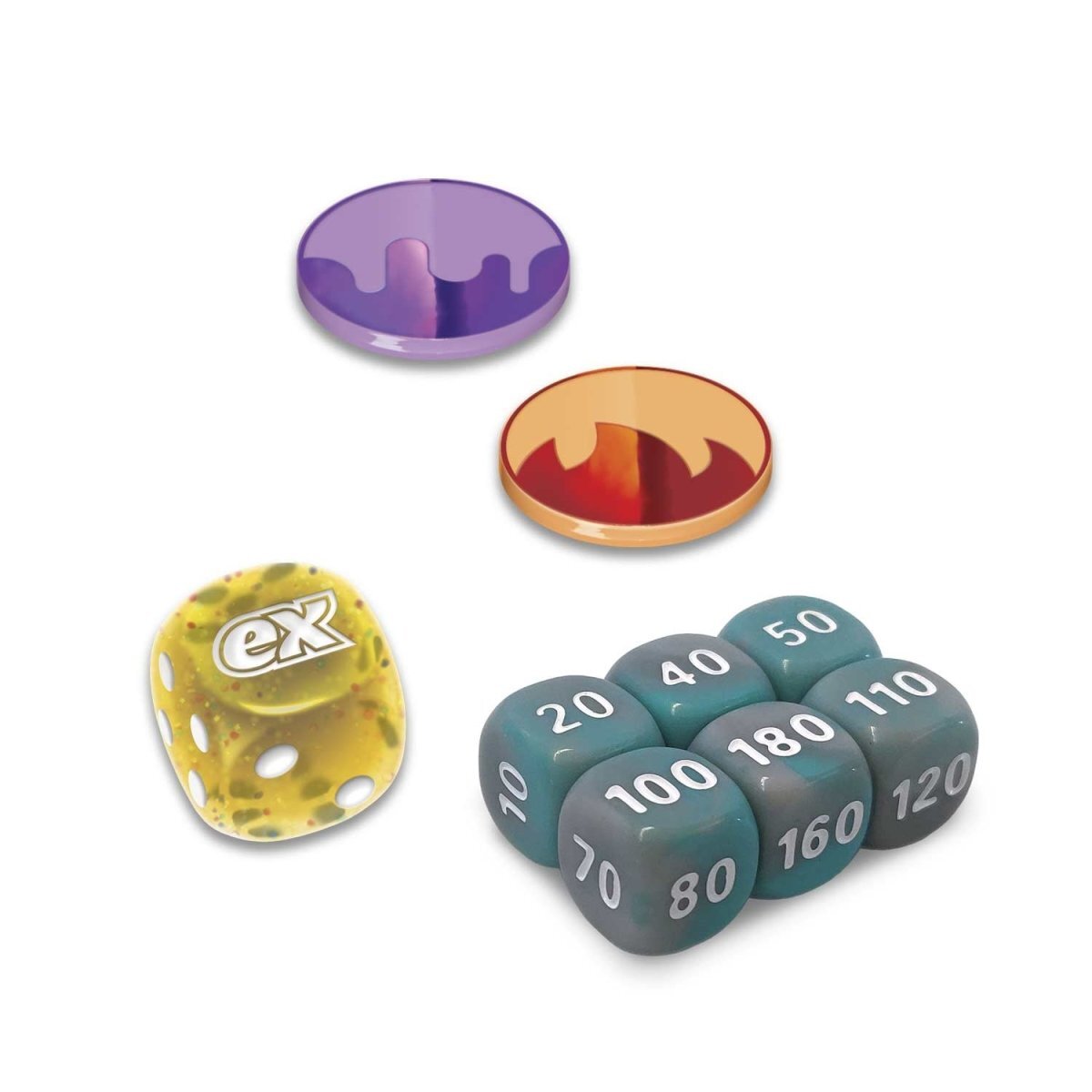 • 6 damage-counter dice, 1 coin-flip die, and 2 plastic condition markers